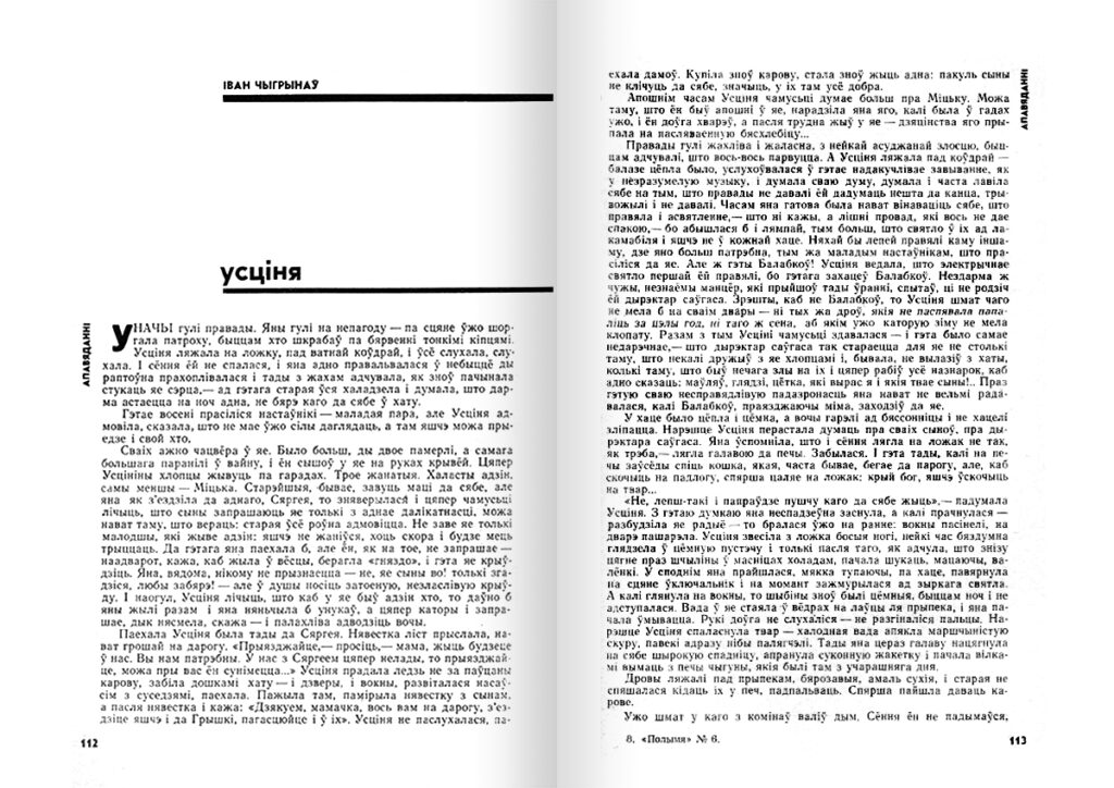 Чыгрынаў, І. Усціня ; Ішоў на вайну чалавек : апавяданні / Іван Чыгрынаў // Полымя. – 1965. – № 6. – С. 112–119.