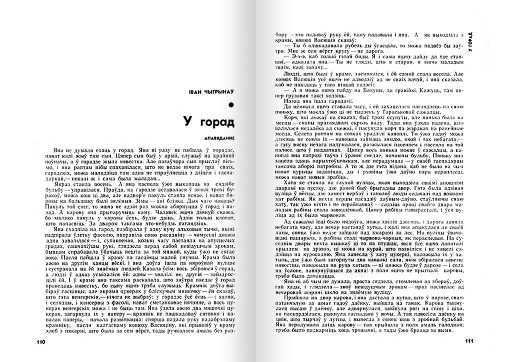 Чыгрынаў, І. У горад : апавяданне / Іван Чыгрынаў // Полымя. – 1966. – № 2. – С. 110–118.