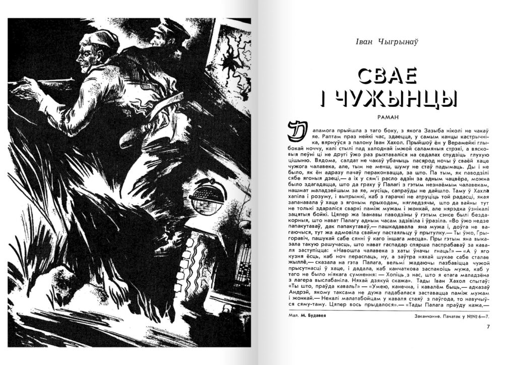 Чыгрынаў, І. Свае і чужыя : урывак з рамана / Іван Чыгрынаў // Літаратура і Мастацтва. – 1979. – 23 лютага. – С. 6–9.