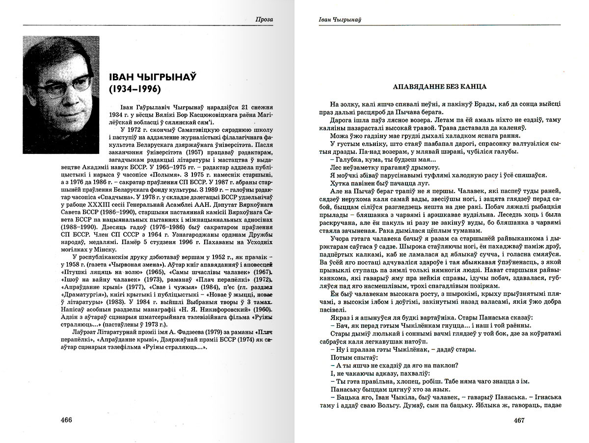 Мастацкае слова ў прозе : зборнік твораў для вывучэння беларускай літаратуры ў 11-м класе : [для старэйшага школьнага ўзросту]. – Мінск : Беларуская Энцыклапедыя імя П. Броўкі, 2017. – 511 с. – (Школьная бібліятэка).