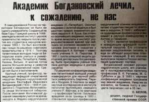 Белов, С. Академик Богдановский лечил, к сожалению, не нас / С. Белов // Могилевская правда. – 1995. – 16 декабря. – С. 3.