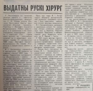 Бржэскі, В. Выдатны рускі хірург : [Яўстафій Багданоўскі] / В. Бржэскі // Святло Кастрычніка (Мсціслаў). – 1984. – 26 мая. – С. 3.