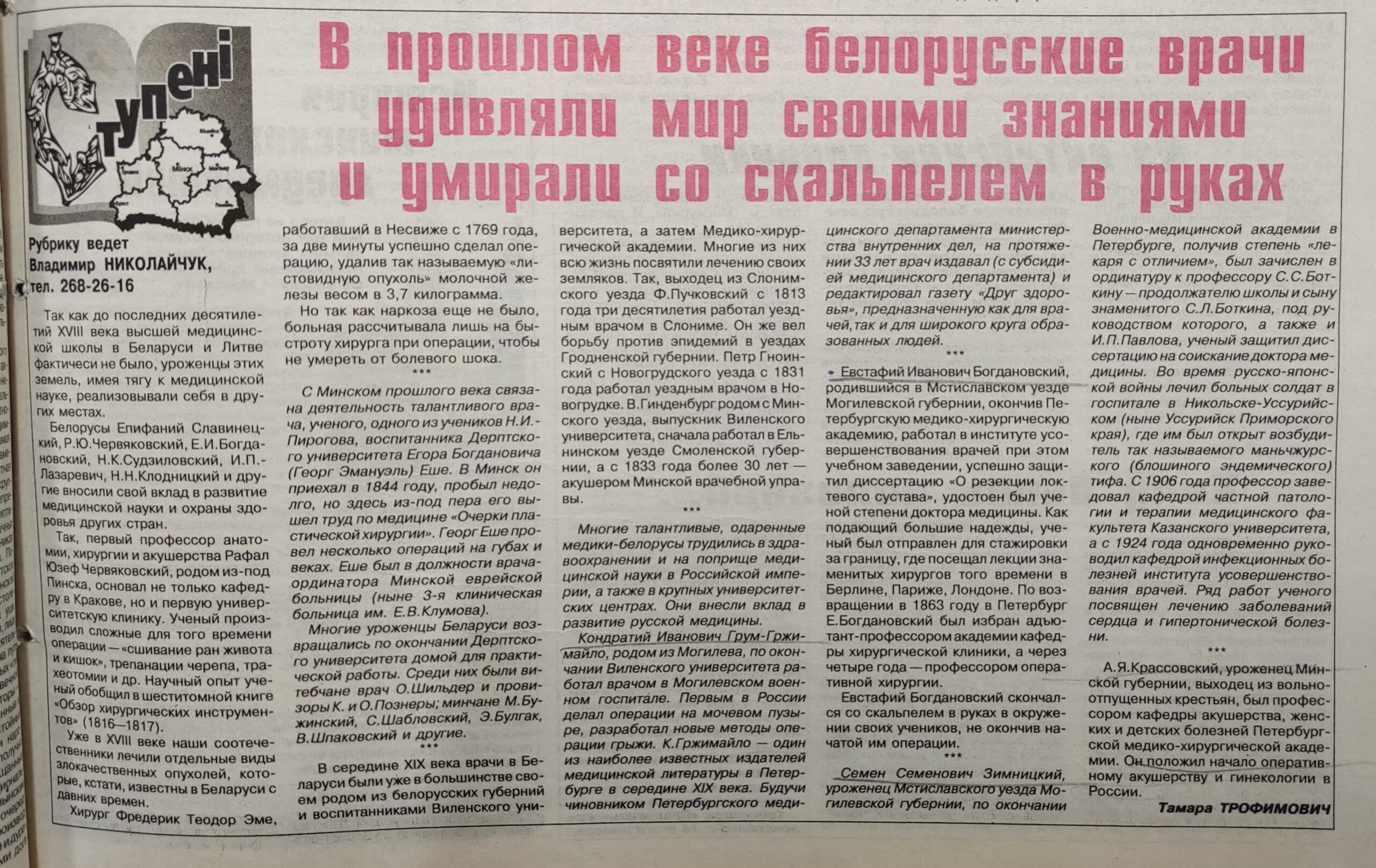 Белов, С. Академик Богдановский лечил, к сожалению, не нас / С. Белов // Могилевская правда. – 1995. – 16 декабря. – С. 3.