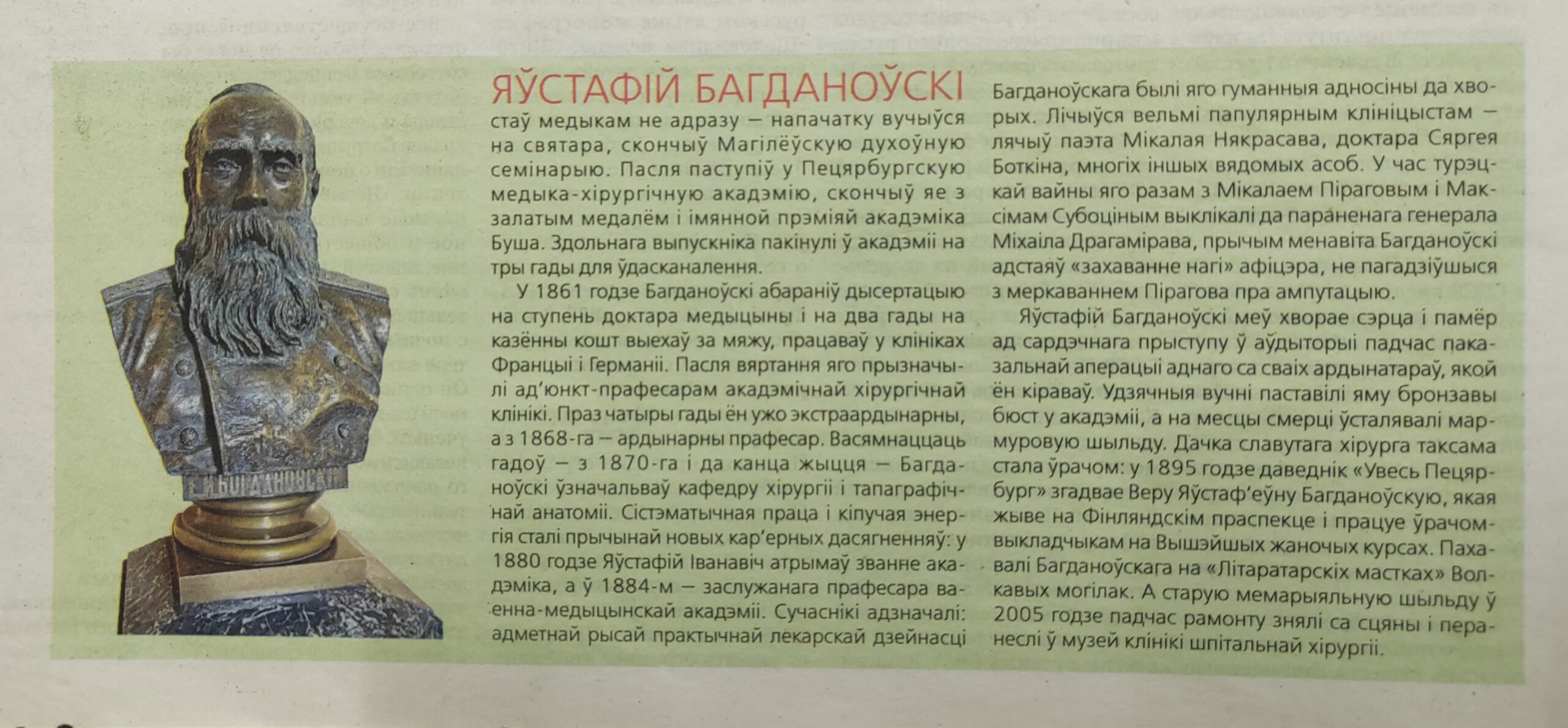 - Яўстафій Багданоўскі // Медицинский вестник. – 2018. – 3 мая. – С. 18 : ил.