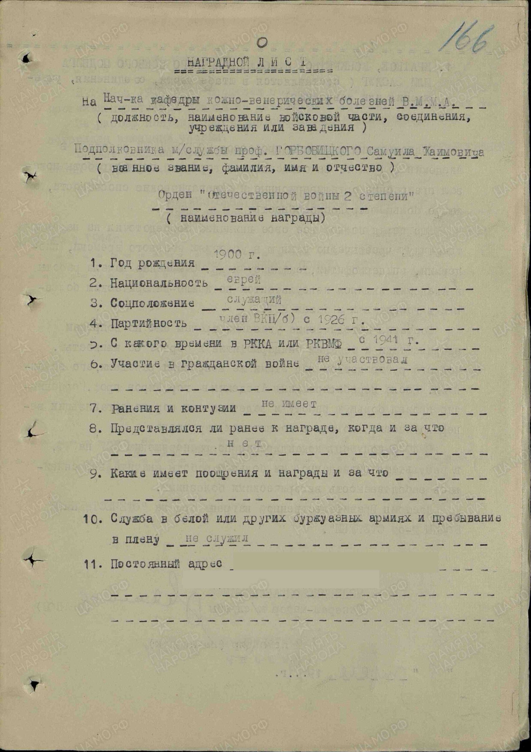 - Горбовицкий Самуил Хаимович. – Текст : электронный // Подвиг народа в Великой Отечественной войне 1941–1945 гг. : обобщенный банк данных / Департамент развития информационных технологий Министерства обороны России. – Москва, 2010–2025. – URL: https://podvignaroda.ru/?#id=50626721&tab=navDetailManAward (дата обращения: 13.01.2025).