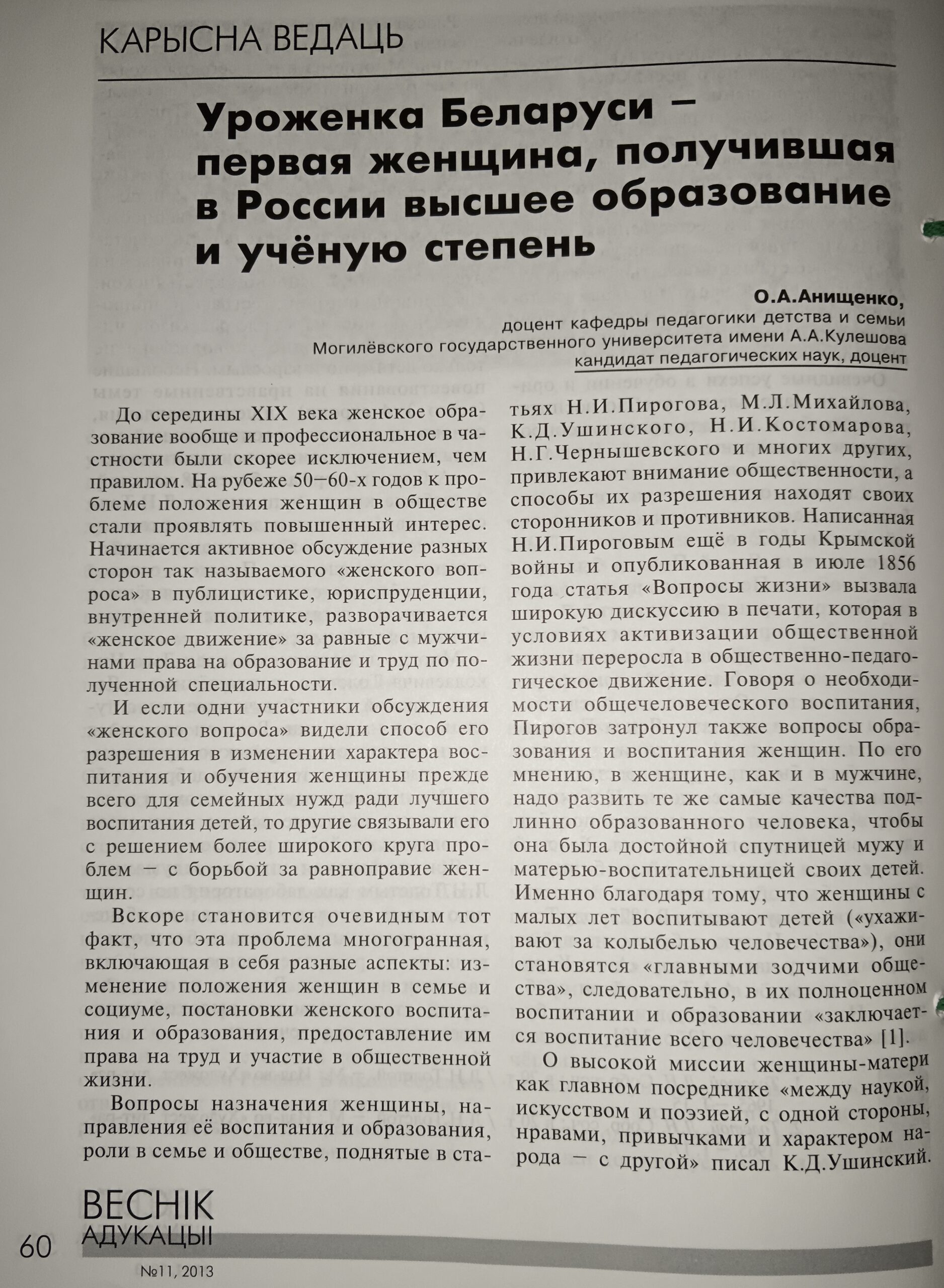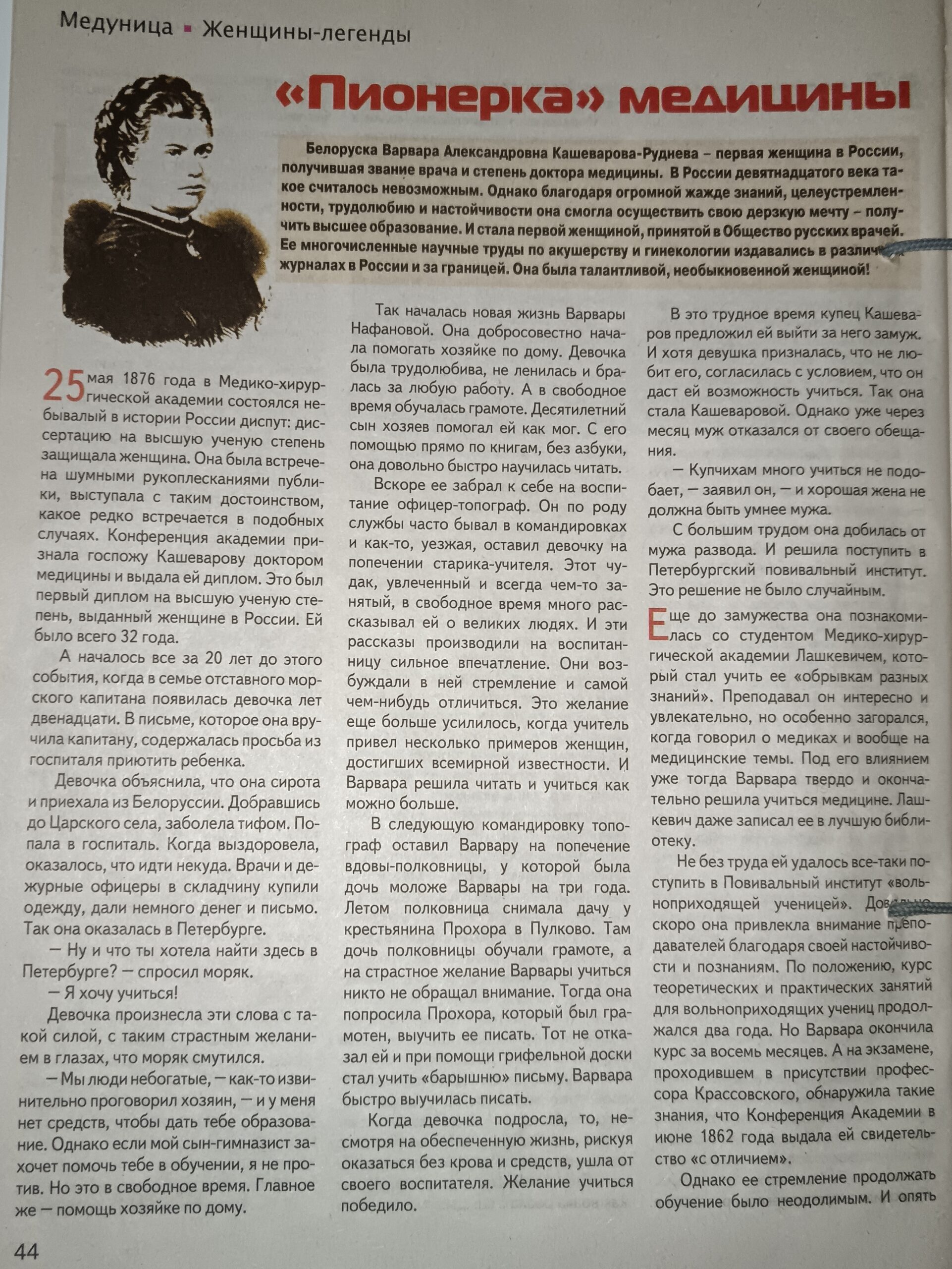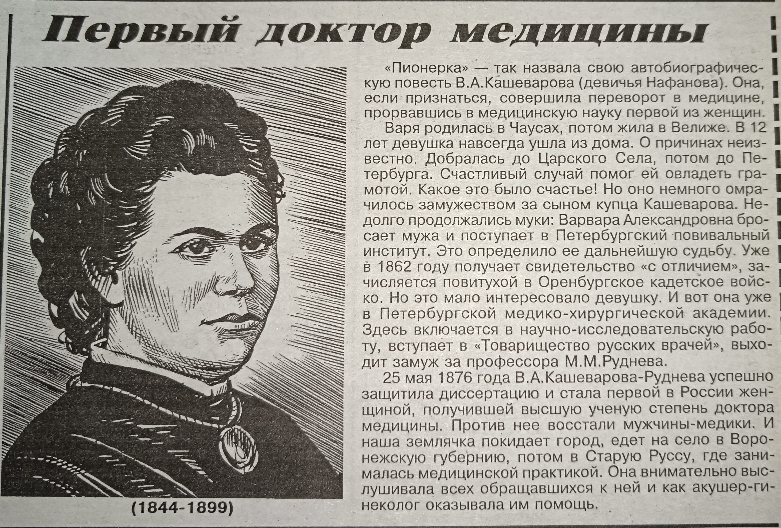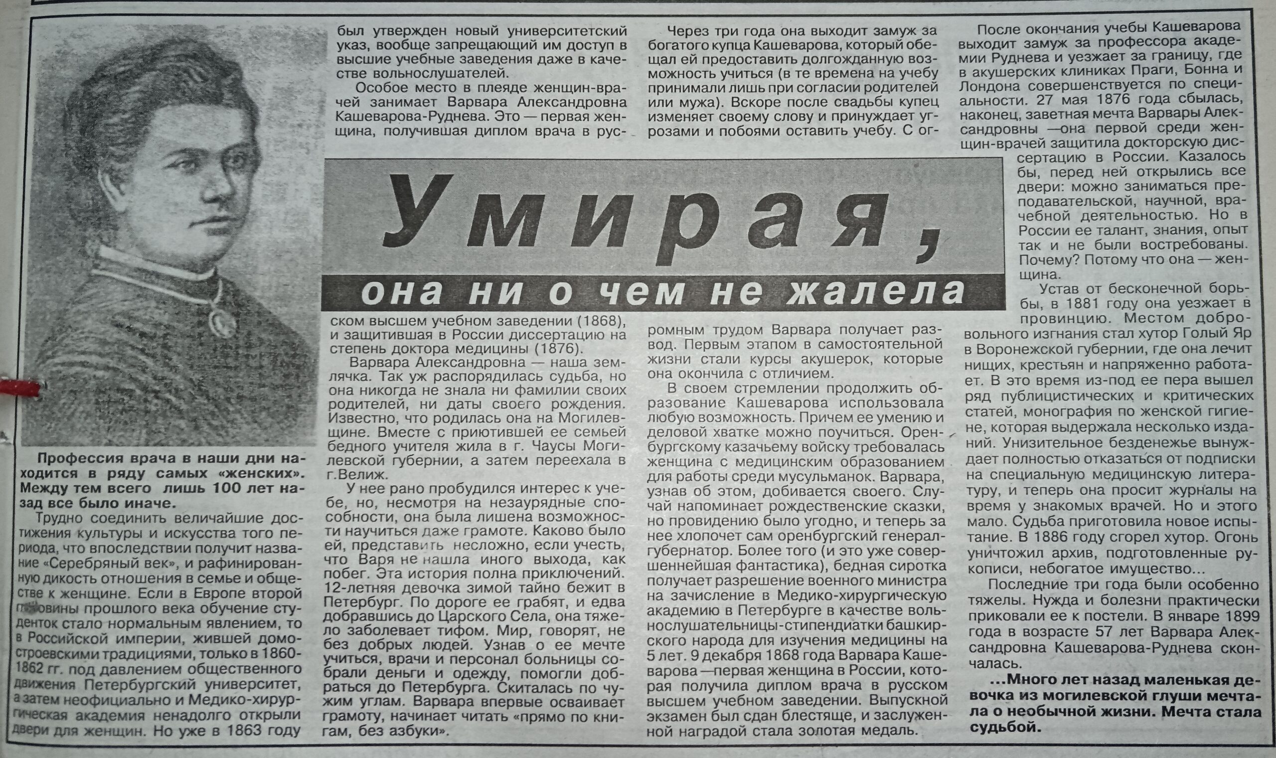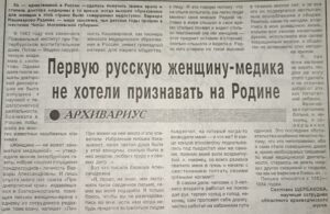 В 1868 г. в «Медицинском вестнике» появилась ее первая научная статья, посвященная женским болезням.