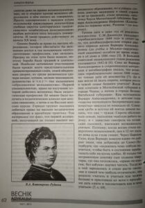 Во время учебы в Императорской медико-хирургической академии в г. Санкт-Петербурге (ФГБВОУ ВО «Военно-медицинская академия им. С. М. Кирова» Министерства обороны Российской Федерации, г. Санкт-Петербург, Российская Федерация) проявила склонность к научной работе.