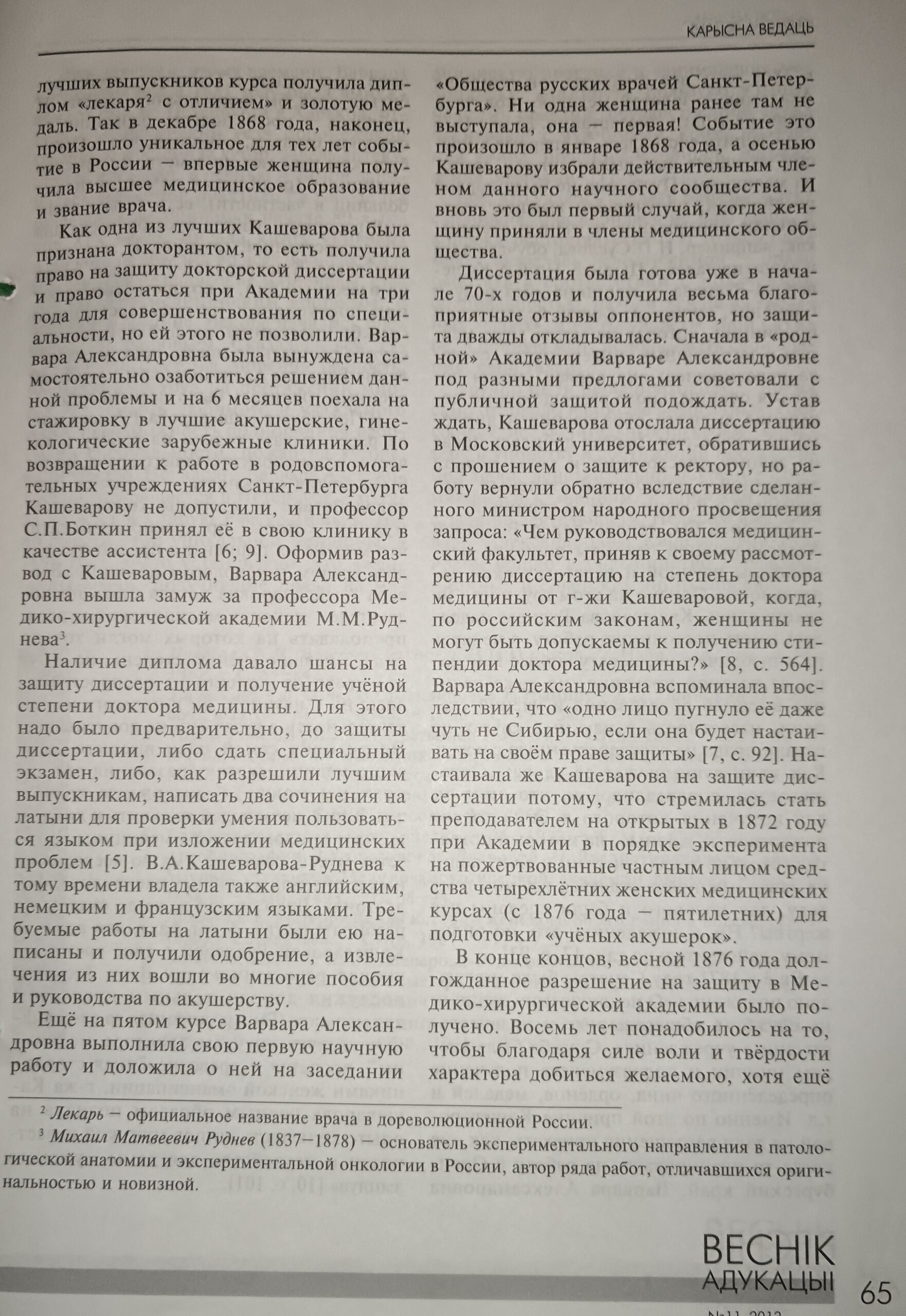К защите докторской диссертации Варвара Александровна сначала не была допущена несмотря на то, что напечатала работу, извлечения из которой вошли во многие руководства по акушерству.