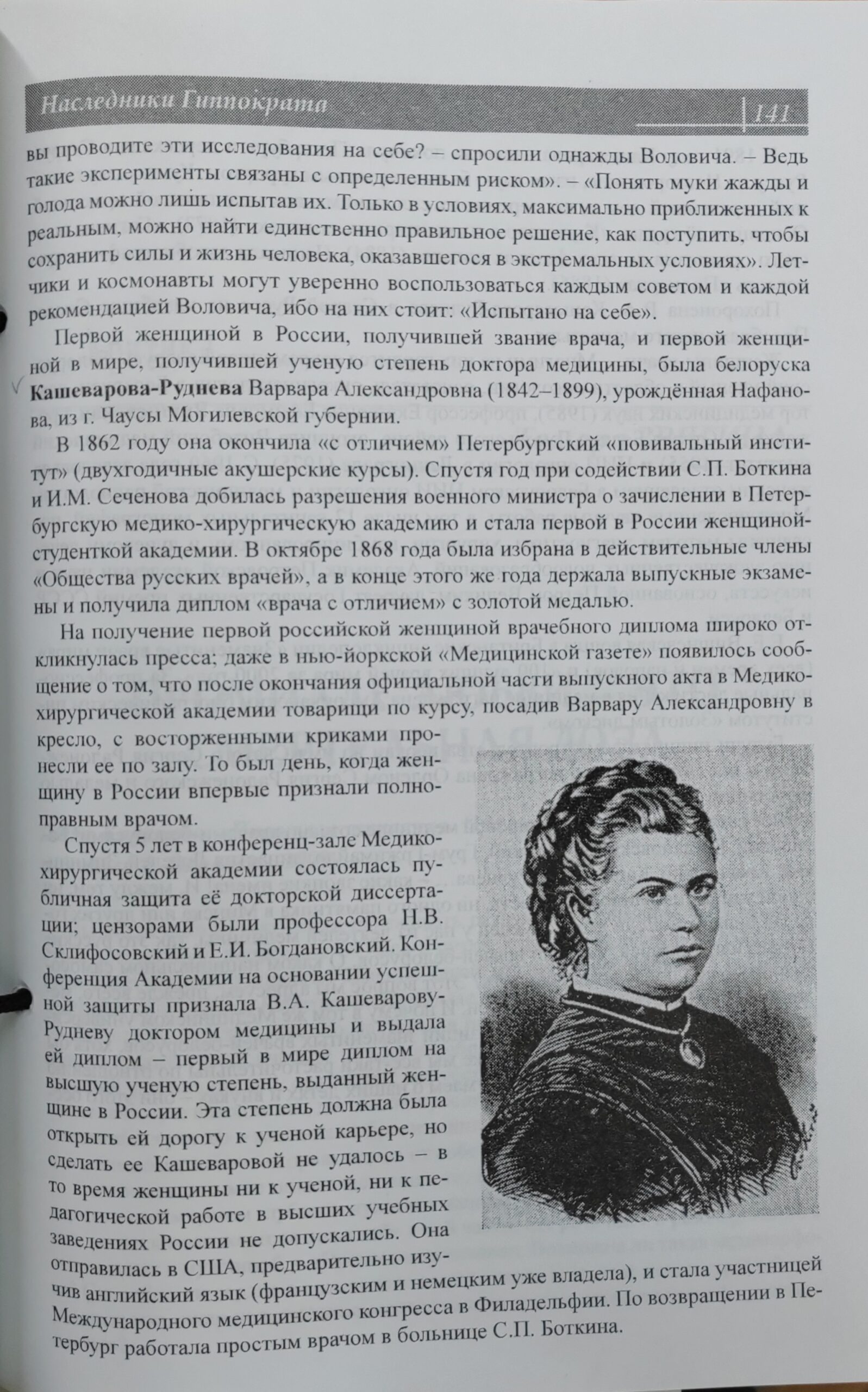 Русский ученый, первая женщина, получившая в России звание врача и степень доктора медицины.