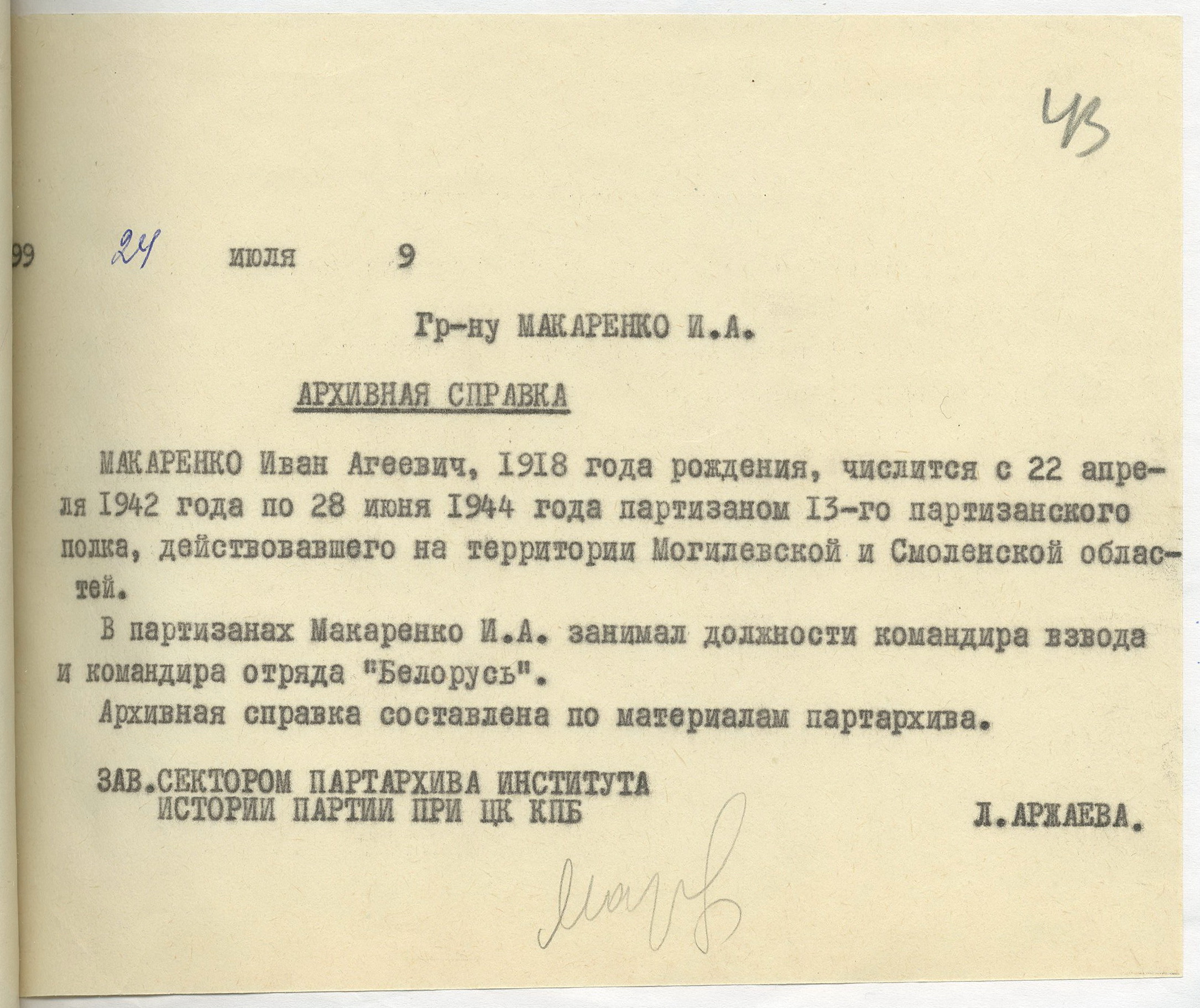 Архивная справка