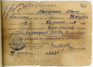 1941–1942 гг. – рядовой 125-го стрелкового полка 6-й стрелковой дивизии Западного фронта.