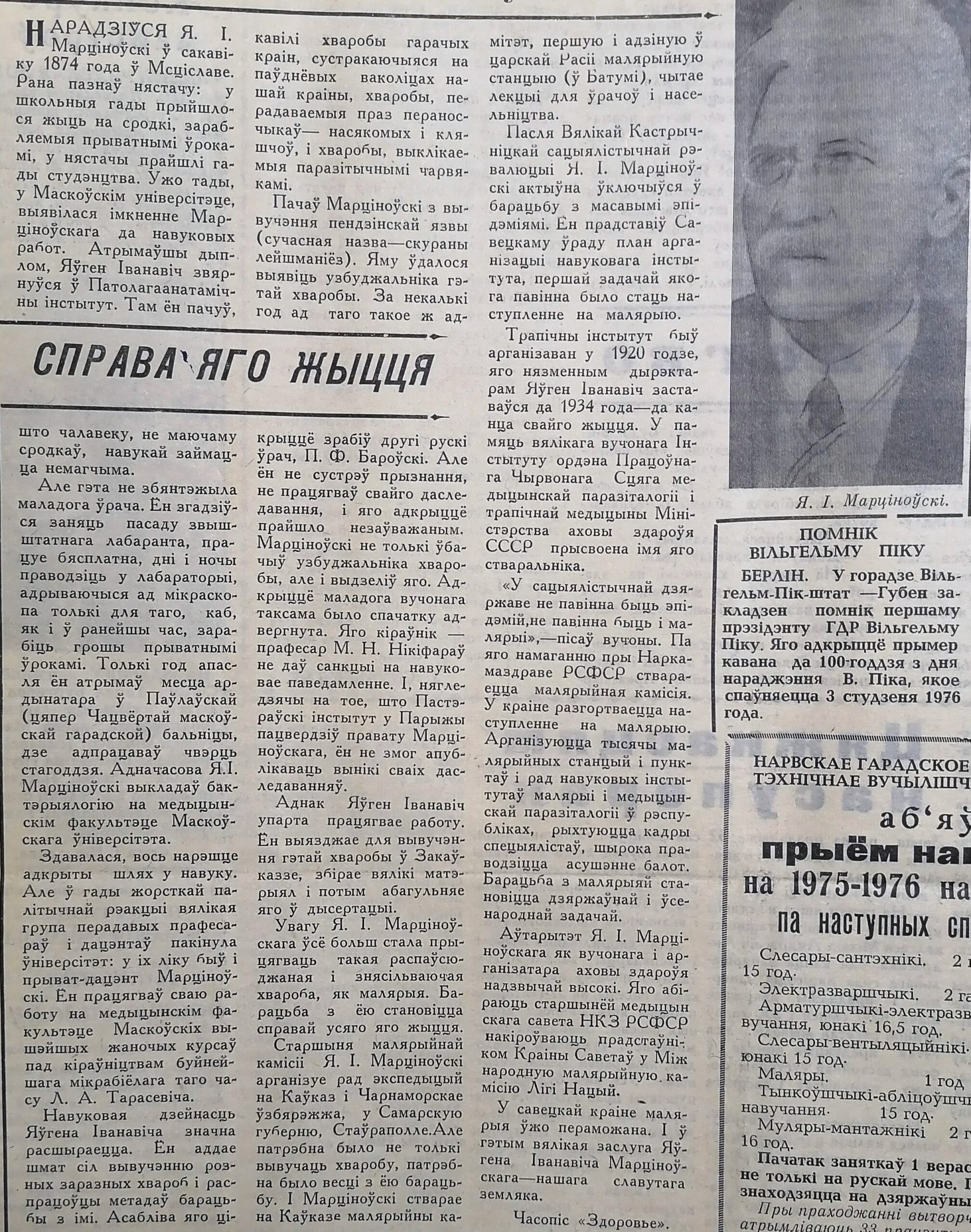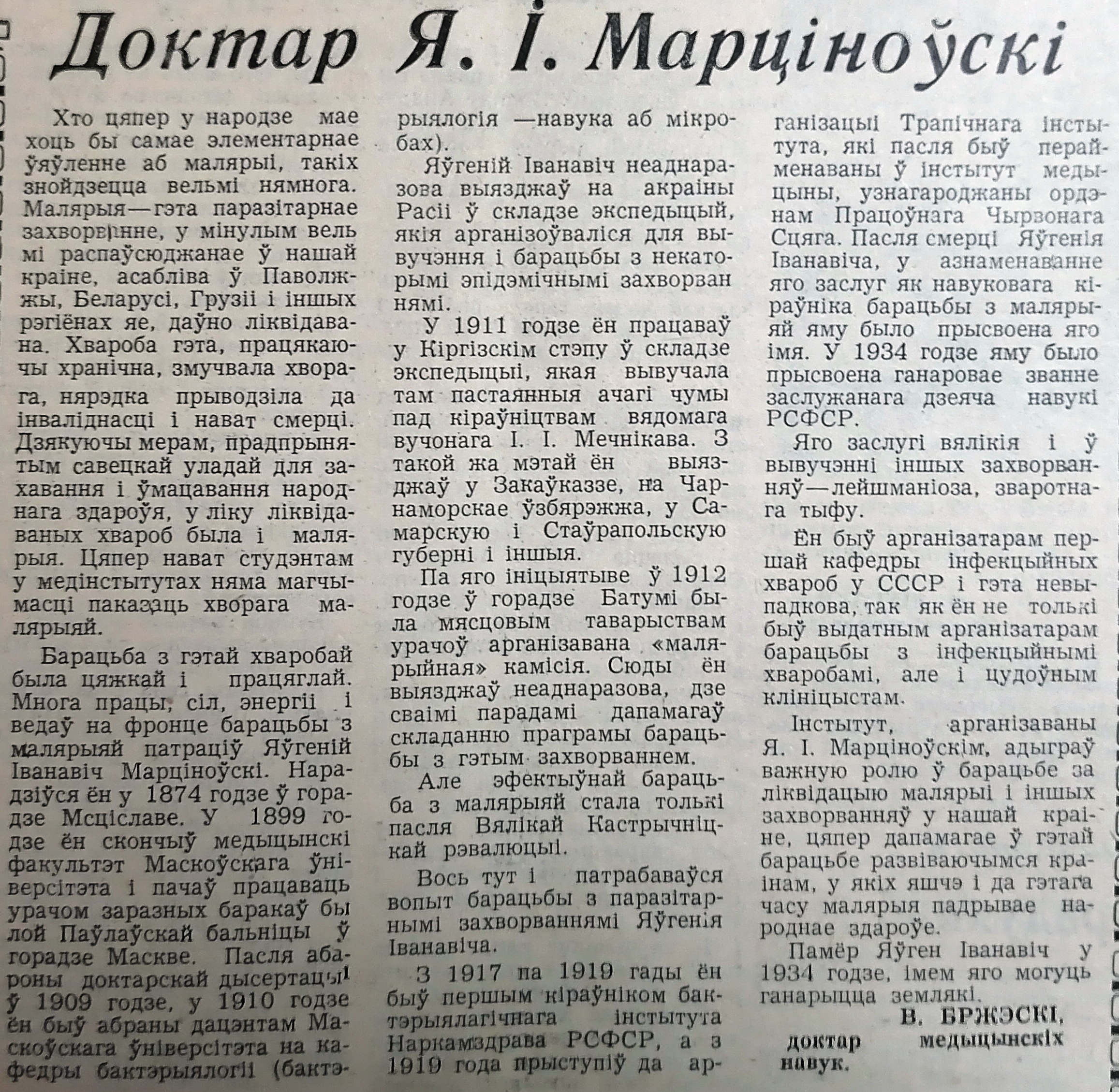 С 1919 г. приступил к организации Тропического института (Институт медицинской паразитологии и тропической медицины) в г. Москве (Институт медицинской паразитологии, тропических и трансмиссивных заболеваний им. Е.И. Марциновского Клинического центра Первого Московского государственного медицинского университета имени И.М. Сеченова, г. Москва, Российская Федерация).