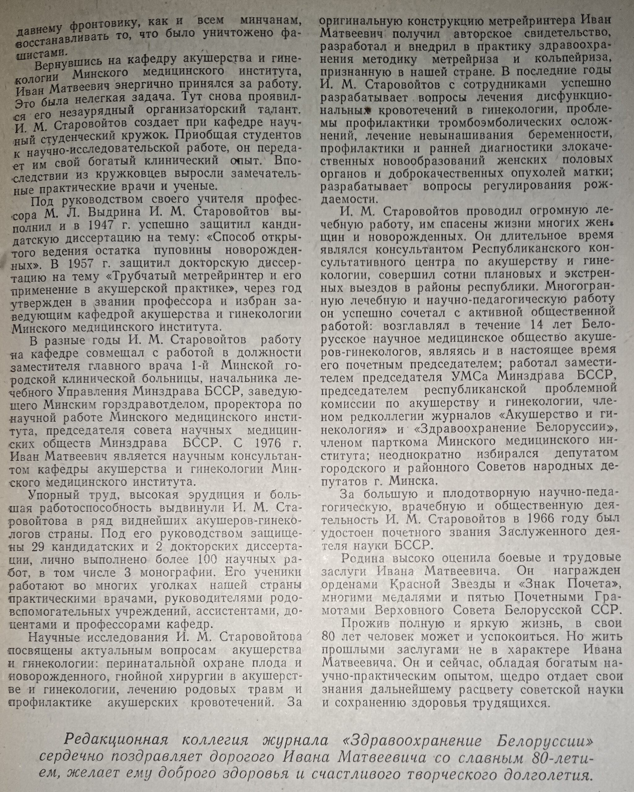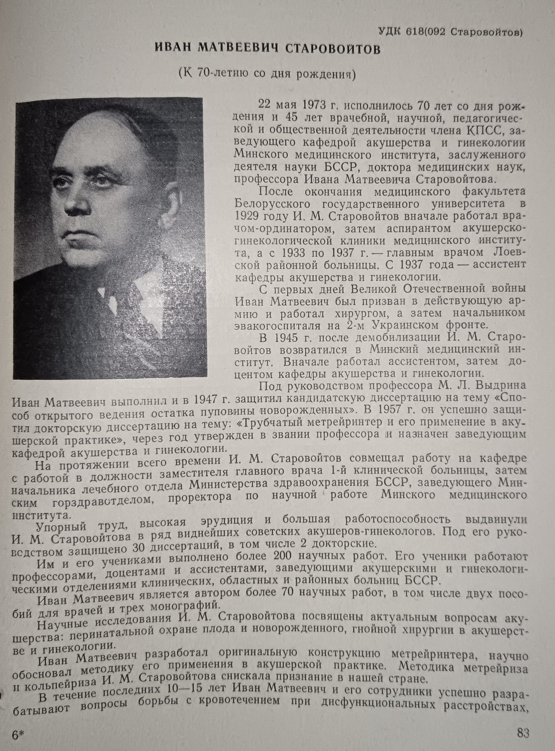 Ученый в области акушерства и гинекологии. Основоположник белорусской школы акушеров-гинекологов.
