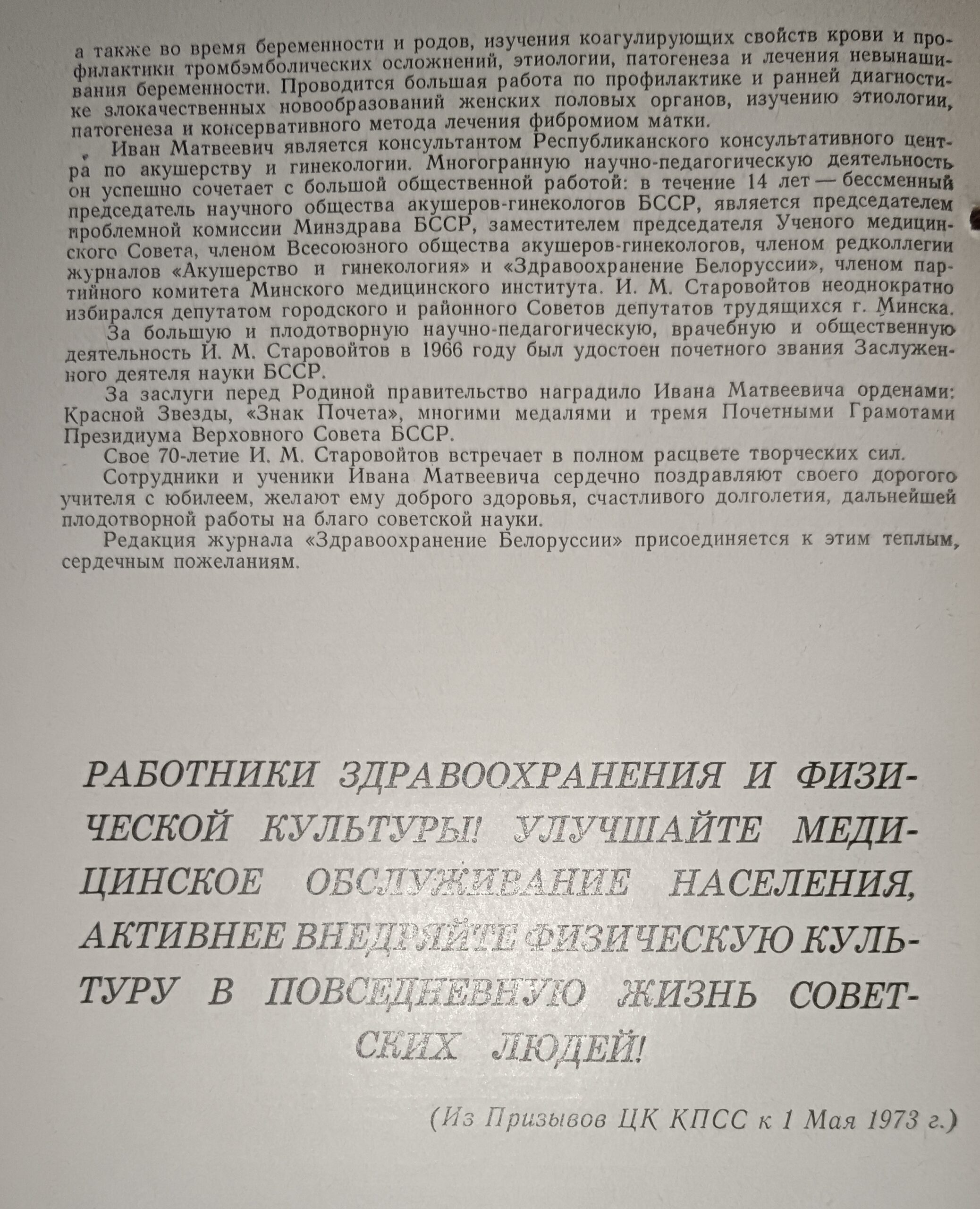 1976–1984 гг. – профессор-консультант кафедры акушерства и гинекологии Минского государственного медицинского института (УО «Белорусский государственный медицинский университет», г. Минск, Республика Беларусь).