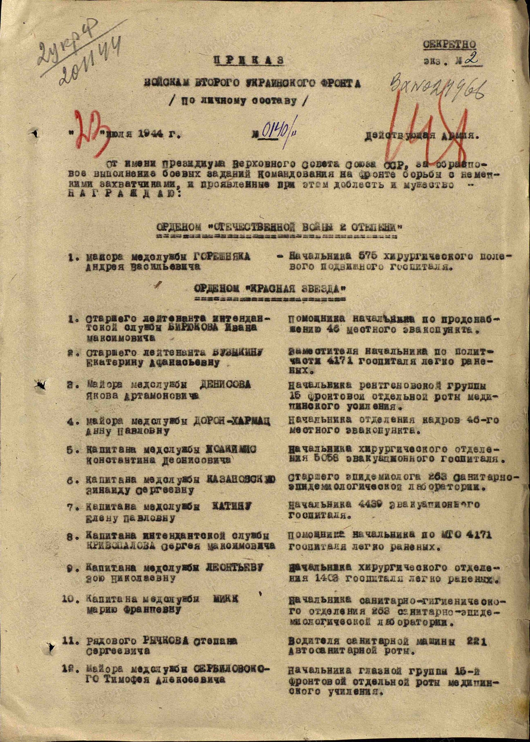 6 марта 1943 г. по личной просьбе был направлен во 2-й Украинский фронт, работал хирургом, затем начальником 5058-го эвакуационного госпиталя 30-го фронтового эвакуационного пункта.
