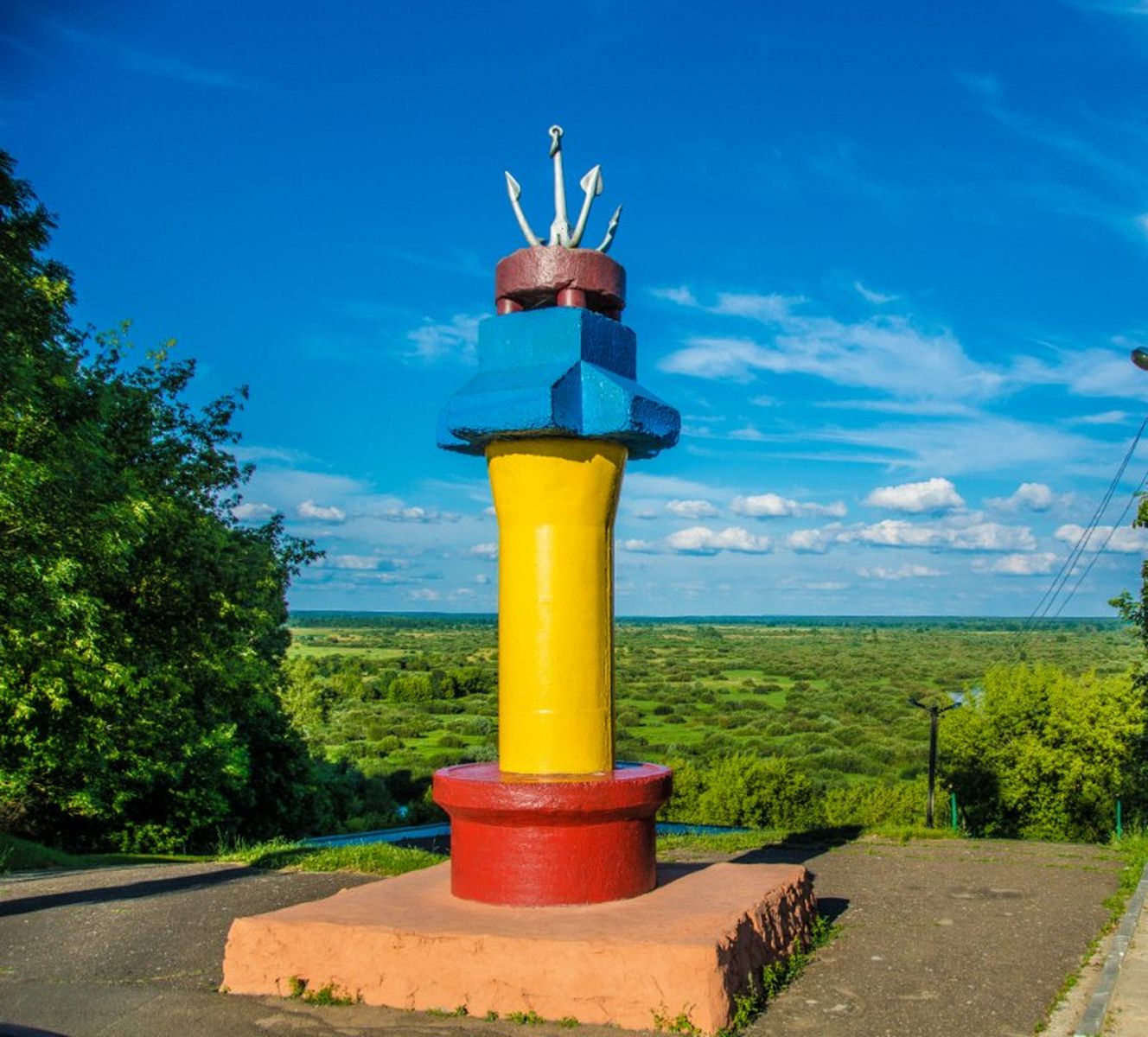 Установлен в память о былом судоходстве и пристани, находившейся здесь в XIX — начале XX в.