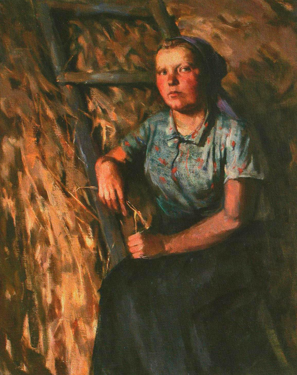 Ахрэмчык, І. В. Партрэт калгасніцы, 1960 : палатно, алей ; 100х79,5 см. Нацыянальны мастацкі музей Рэспублікі Беларусь.