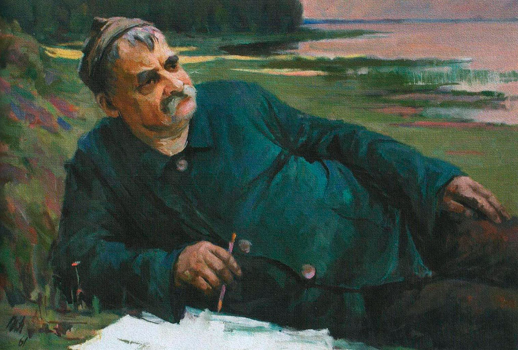 Ахрэмчык, І. В. Партрэт М. І. Аладава, 1961 : палатно, алей ; 59,5х85 см. Нацыянальны мастацкі музей Рэспублікі Беларусь.