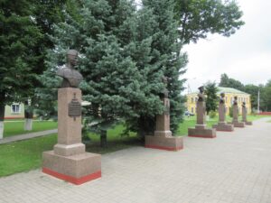 У цэнтры Касцюковічаў закладзена Алея Славы і памяці воінаў, якія загінулі ў гады Вялікай Айчыннай вайны. На ёй устаноўлена шэсць бронзавых бюстаў ураджэнцаў Касцюковіцкага раёна, якія атрымалі званне Герояў Савецкага Саюза. Сярод іх генерал Васіль Філіпавіч Маргелаў, якога называюць «Батей ВДВ» і «Десантником № 1».